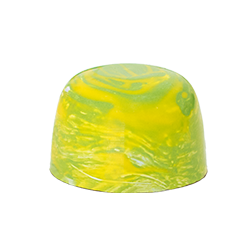 Beschreibung: Ein leckeres Passionsfrucht-Karamell getoppt mit einem Limetten Gel sorgen in dieser Praline für einen fruchtigen Frische-Kick.