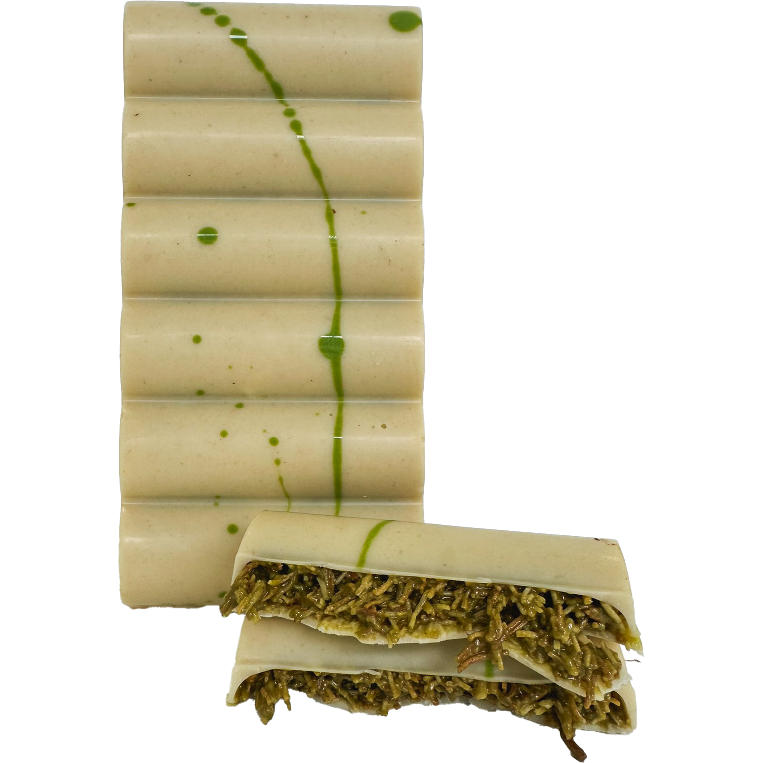 Zutaten: Kakaobutter, Pistazien, Rohrohrzucker WEIZENmehl, Sesam, Reissiruppulver, Erdmandelmehl, Sonnenblumenöl, Salz